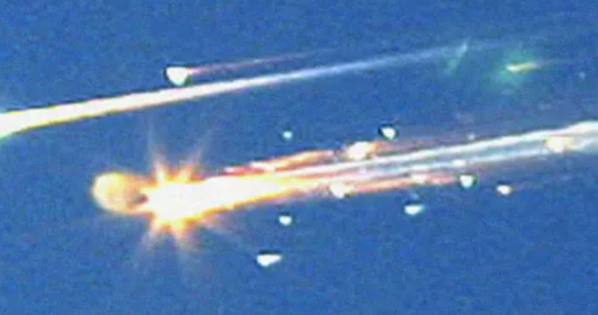几分钟后,美国各地的电视台画面出现了惊人的景象:清晨的天空中,几道火光划过天际,碎片拖出长长的尾迹。航天飞机在距离地面约61公里的高空解体,残骸散落在德克萨斯和路易斯安那两州的大片地区。