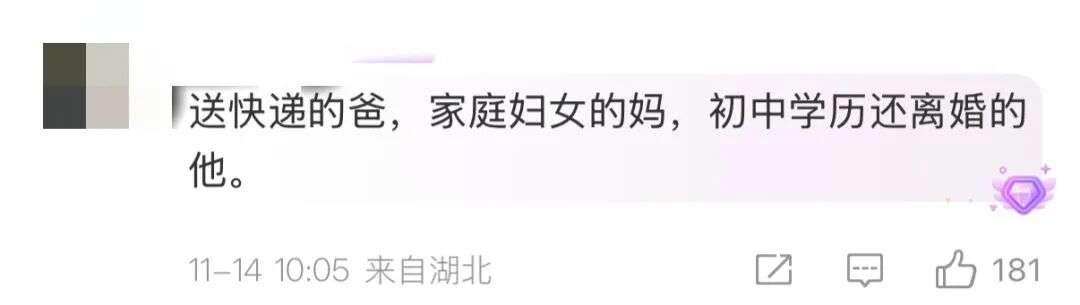 在这些包装下,故事就变成了很多人眼里“送快递的爸,照顾家的妈,初中毕业还二婚的他”。