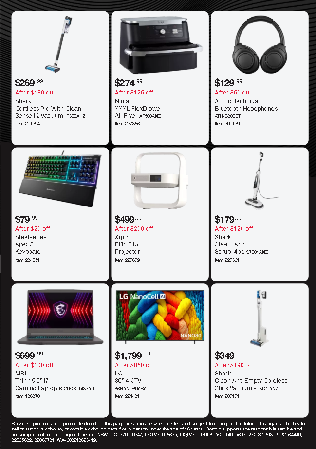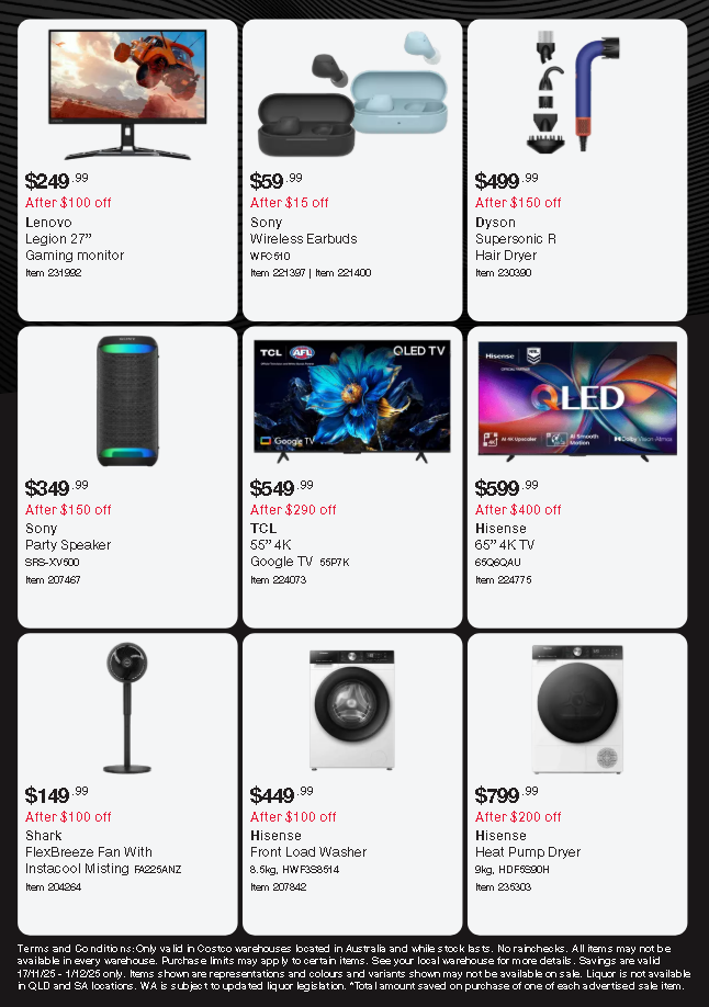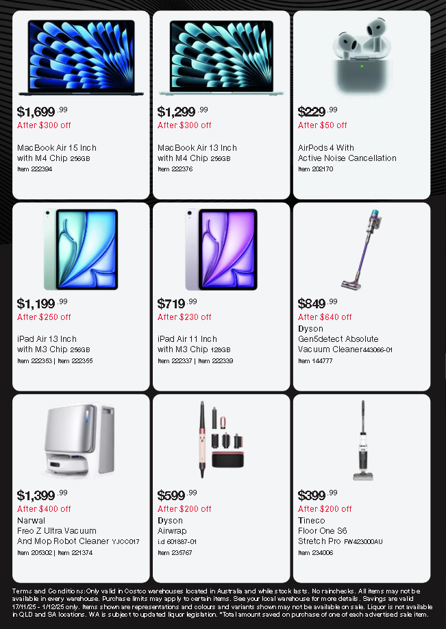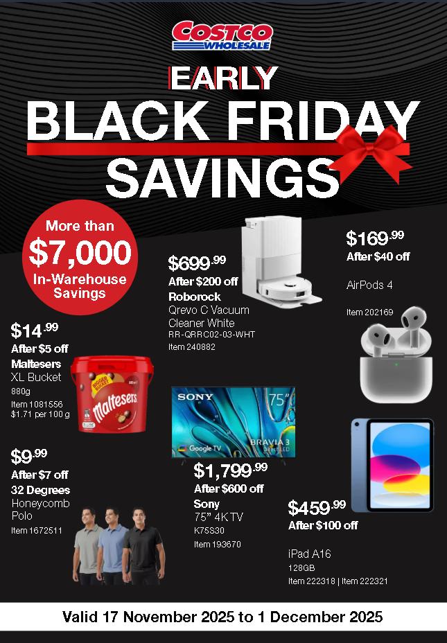 澳洲的黑五大战已经打响了,Costco刚刚放出自己的折扣目录: