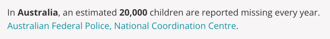 据悉,在澳洲每年大概有2万名儿童被报告发生失踪事件!