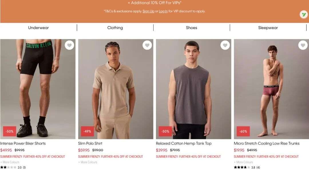 目前CK这边的大促也已全面开启,部分商品价格甚至达到了惊人的四折,VIP还能再尊享10% Off!