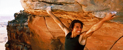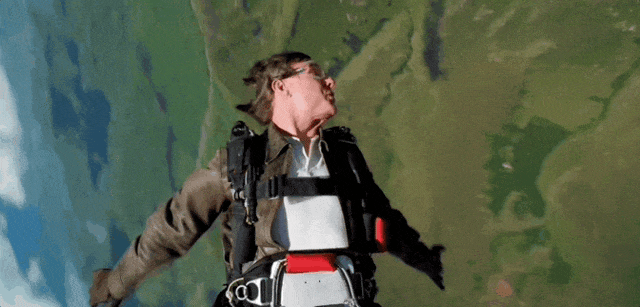 《碟中谍7:致命清算》中克鲁斯在离地约1200米的峡谷中坠落,并在不到152米的空中,打开降落伞