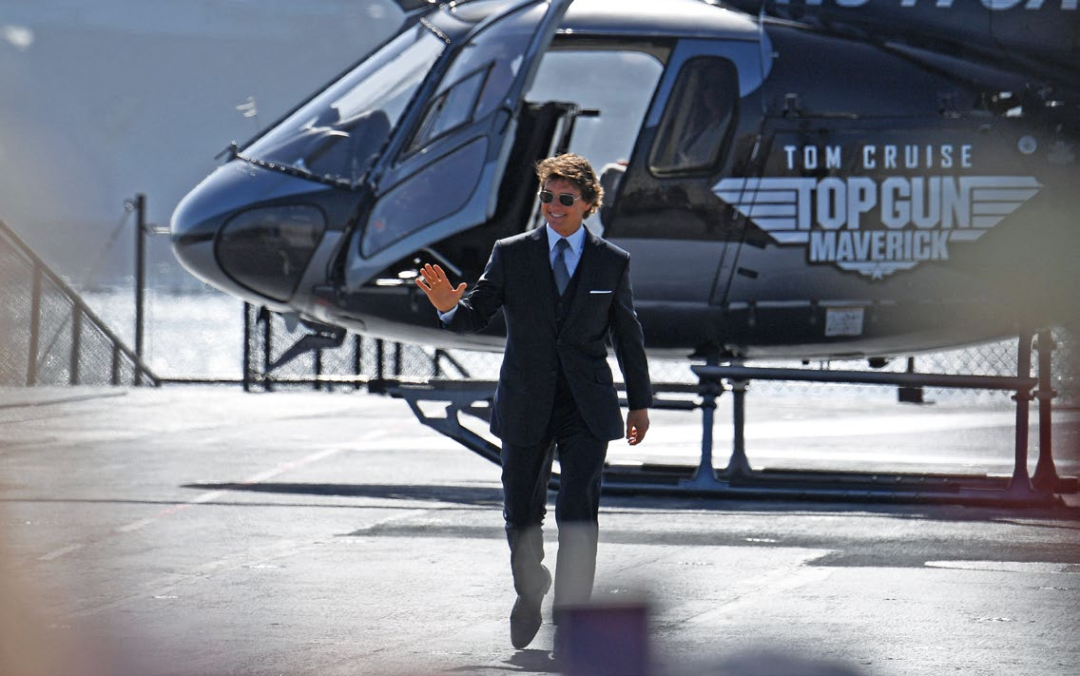 2022年5月4日,汤姆·克鲁斯搭乘直升机抵达《壮志凌云2:独行侠》全球首映礼