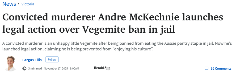 收藏离谱!墨尔本一犯人起诉政府,理由竟是:监狱不准吃国酱!