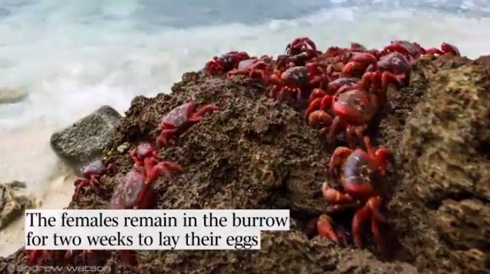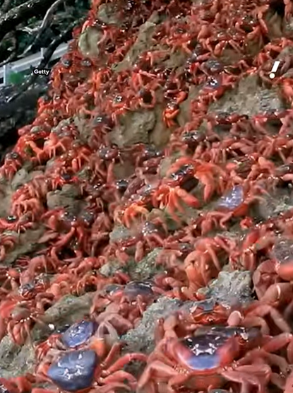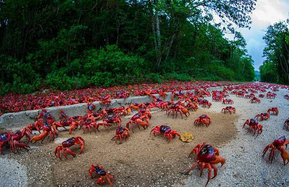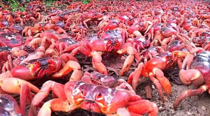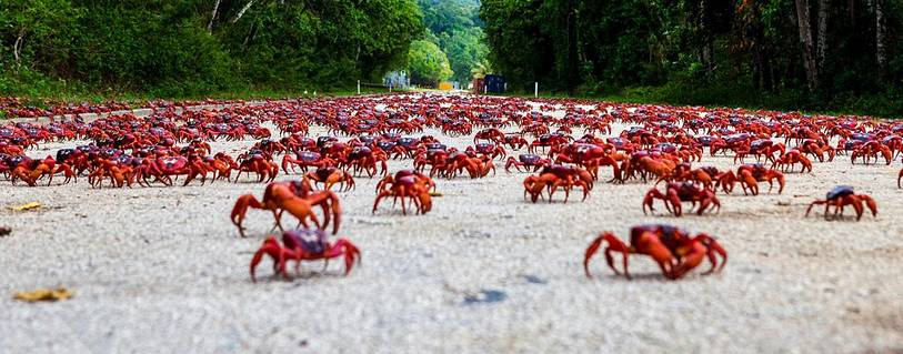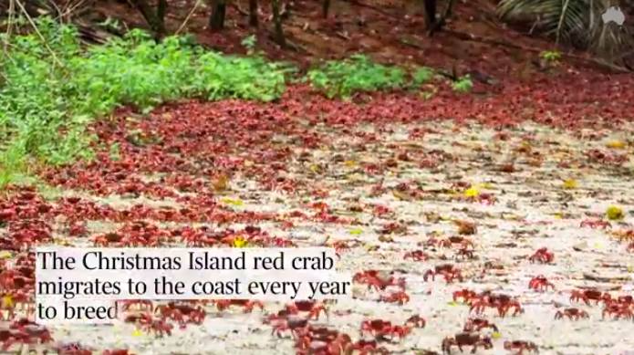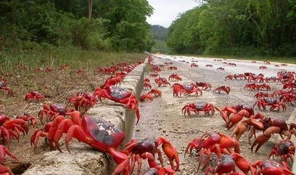 每年10月底到1月初,当圣诞岛迎来雨季之时,几千万只红蟹就会开始为期数天的大迁徙。