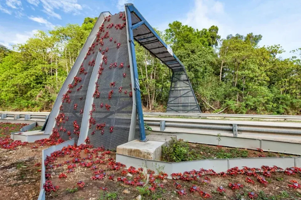 为了减少车辆对红蟹的伤害,岛上还建起了专门为红蟹设计的“天桥”,让它们安全过马路。