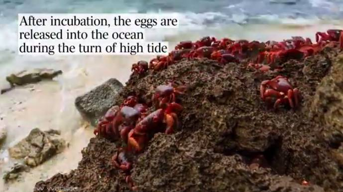 那么,红蟹冒着生命危险,坚持爬到海边到底是为了什么呢?