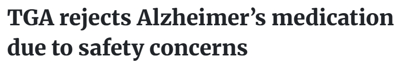 在澳大利亚,类似药物lecanemab的注册申请曾被治疗商品管理局(TGA)拒绝,理由是“其展示的疗效并未超过使用该药物的安全风险”。