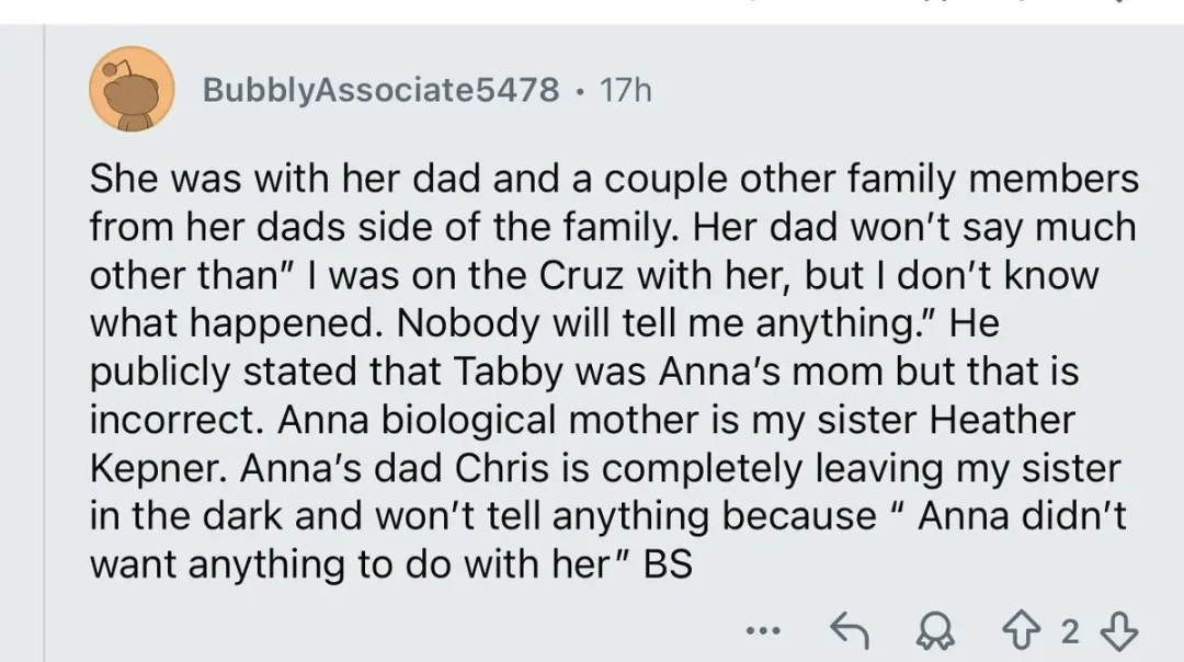 耐人寻味的是,这条帖子似乎与安娜生母发出的消息遥相呼应……
