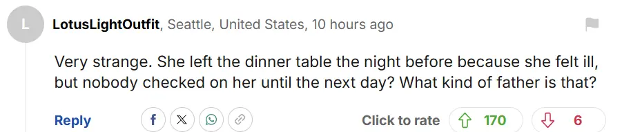 “太奇怪了,她因为不舒服提前离开晚餐,然而到第二天之前都没有人检查过她的情况?这是什么样的父亲?”
