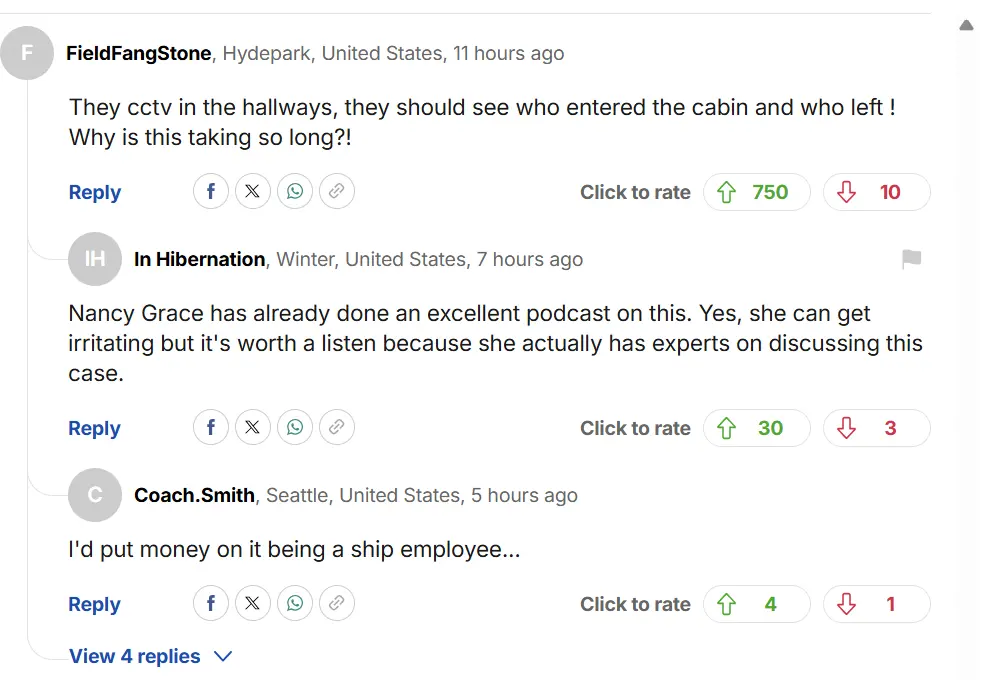 也有人怀疑安娜可能被船上的工作人员盯上了。