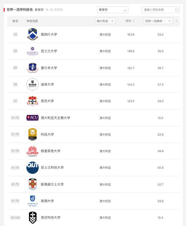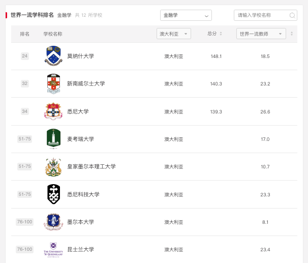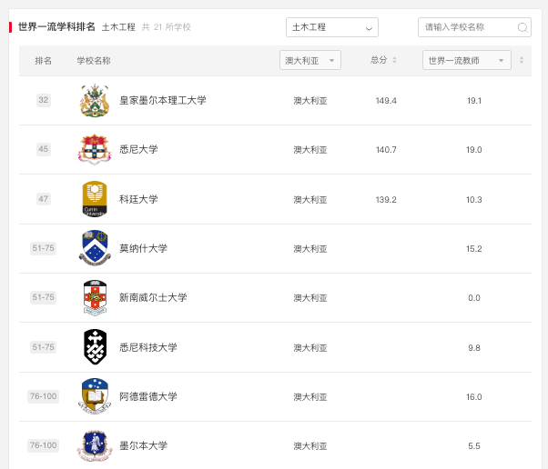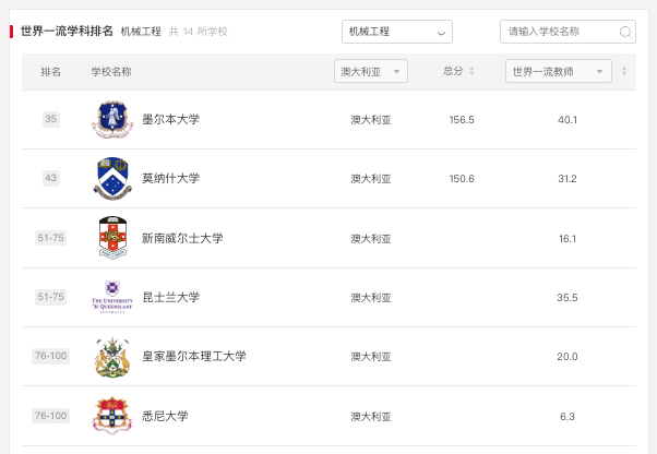 这次排名澳洲大学整体表现亮眼!我们来看一下一些热门学科的澳洲大学全球排名吧!