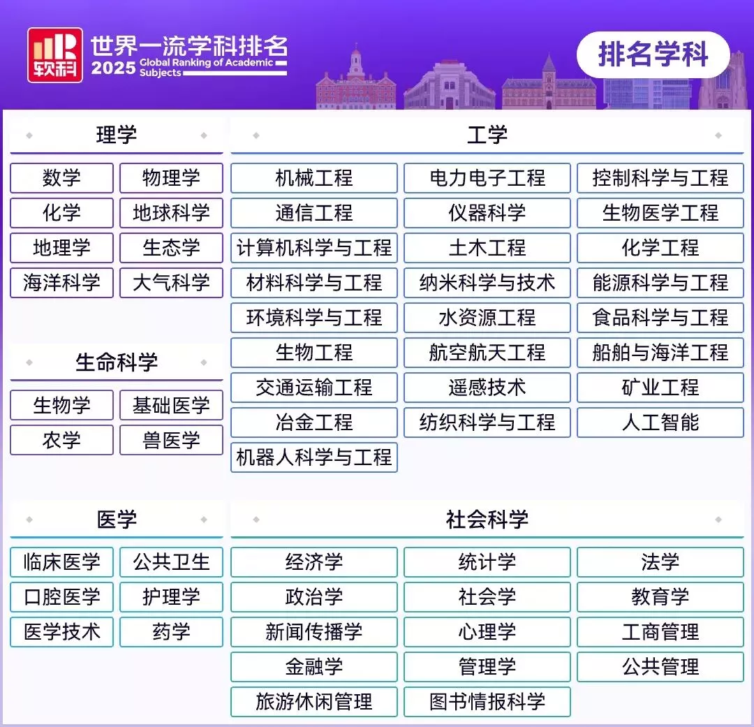 2025软科世界一流学科排名(ShanghaiRanking's Global Ranking of Academic Subjects,简称GRAS)正式发布!