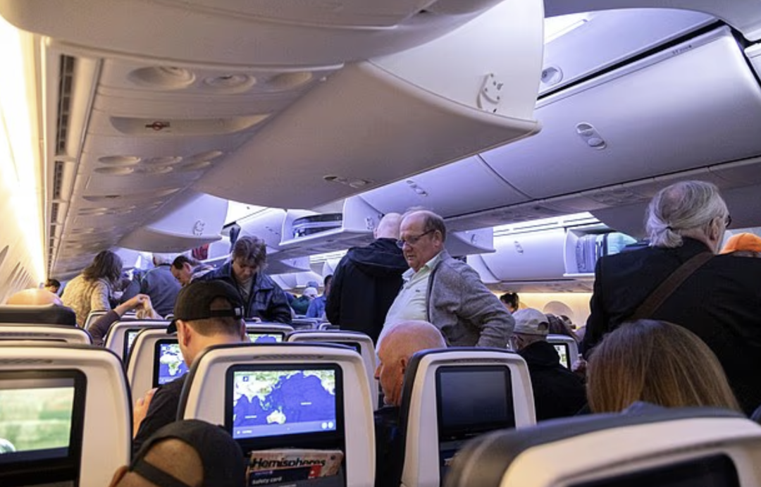 这是一趟16小时的长途航班,乘客们安顿下来之后,就准备休息了,飞机顺利上天。