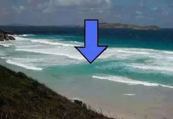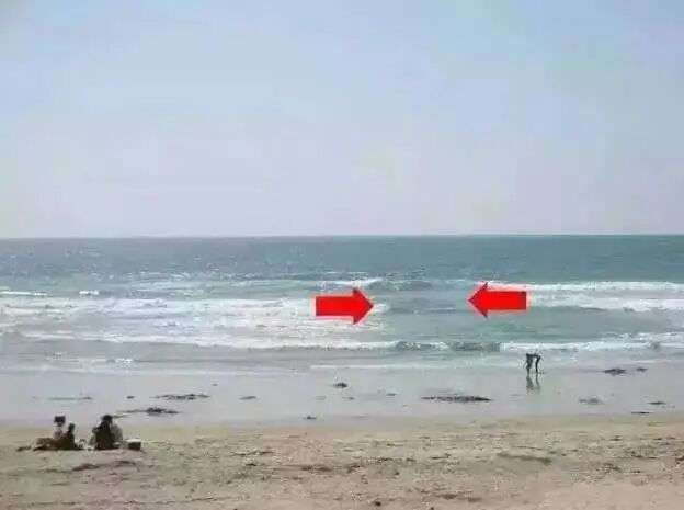 如果你在海边,看到两边都是浪花,偏偏中间一块很平静,就要当心离岸流了。