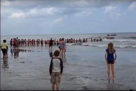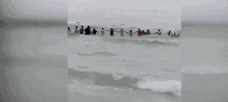 幸亏沙滩上当时的游客们也没有盲目下海救人,而是筑起一道人墙,由近80个人手拉手,组成了海上人链,走向受困的人群并成功救援。