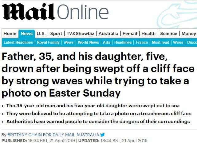 2019年4月21日,35岁的中国籍男子带着他5岁的小女儿在南澳著名景点埃尔半岛游玩。