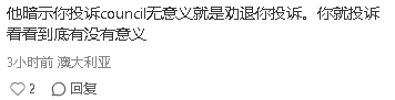 他暗示你投诉council无意义,就是劝退你投诉。你就投诉看看到底有没有意义。