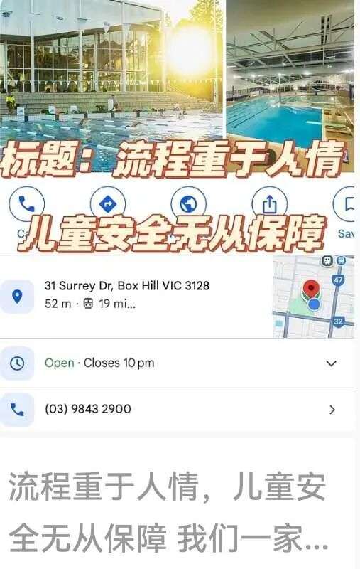 收藏独家,墨华人妈曝料:Box Hill游泳馆,孩子被公开辱骂