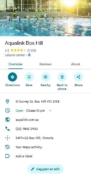 这位妈妈爆料的这家游泳馆,位于墨尔本东区华人区Box Hill,名为Aqualink Box Hill: