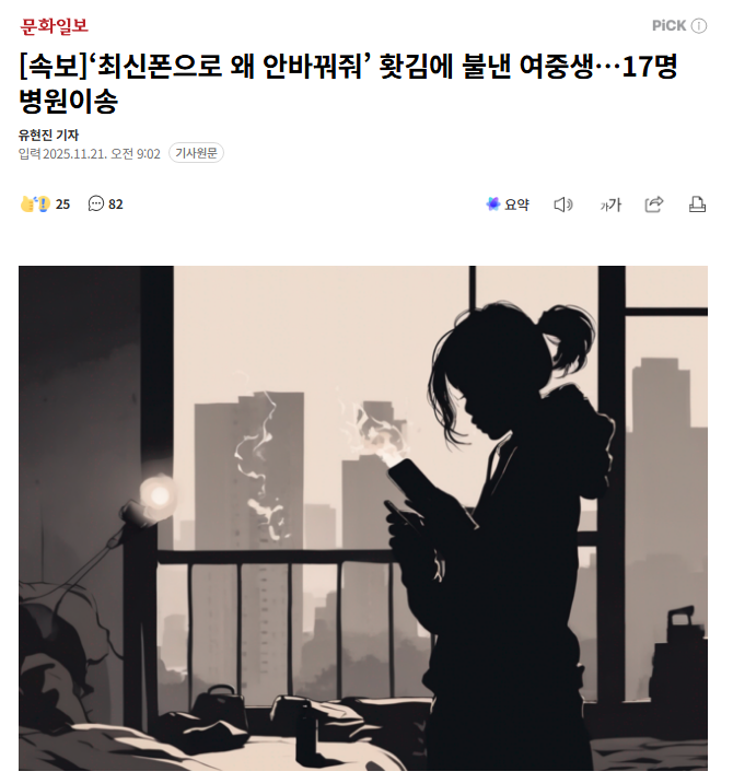 收藏父母不给换新手机,韩国初中女生放火烧楼,致17名邻居进医院…