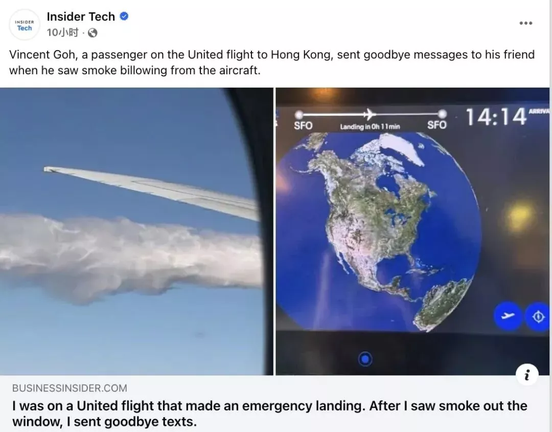自己的座位“离油箱很近”,能亲眼看到窗外烟雾不断冒出,再加上机长的广播,恐惧感倍增。