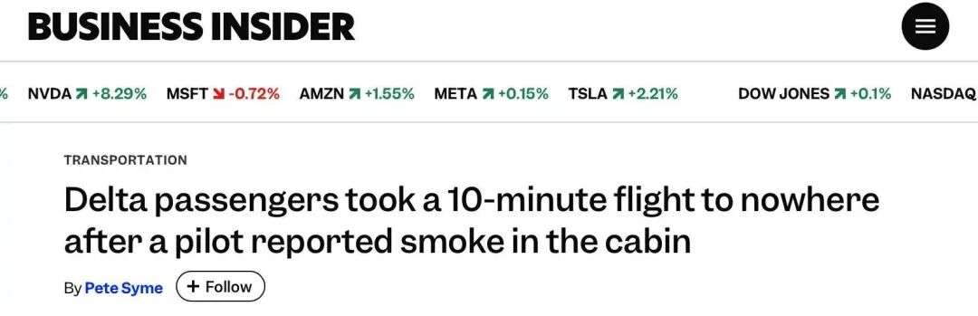 据Business Insider报道,今年2月,一架达美航空从亚特兰大飞往南卡罗来纳州哥伦比亚的航班因机舱出现烟雾,仅飞行5分钟便紧急返航。