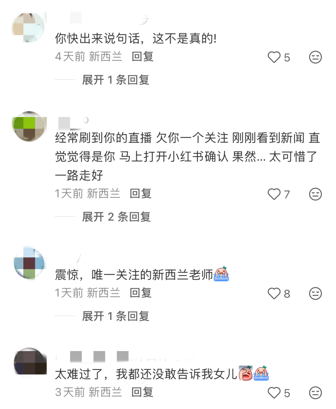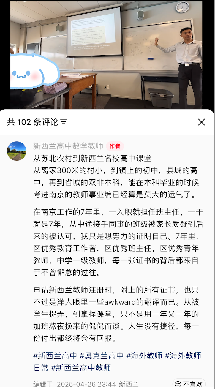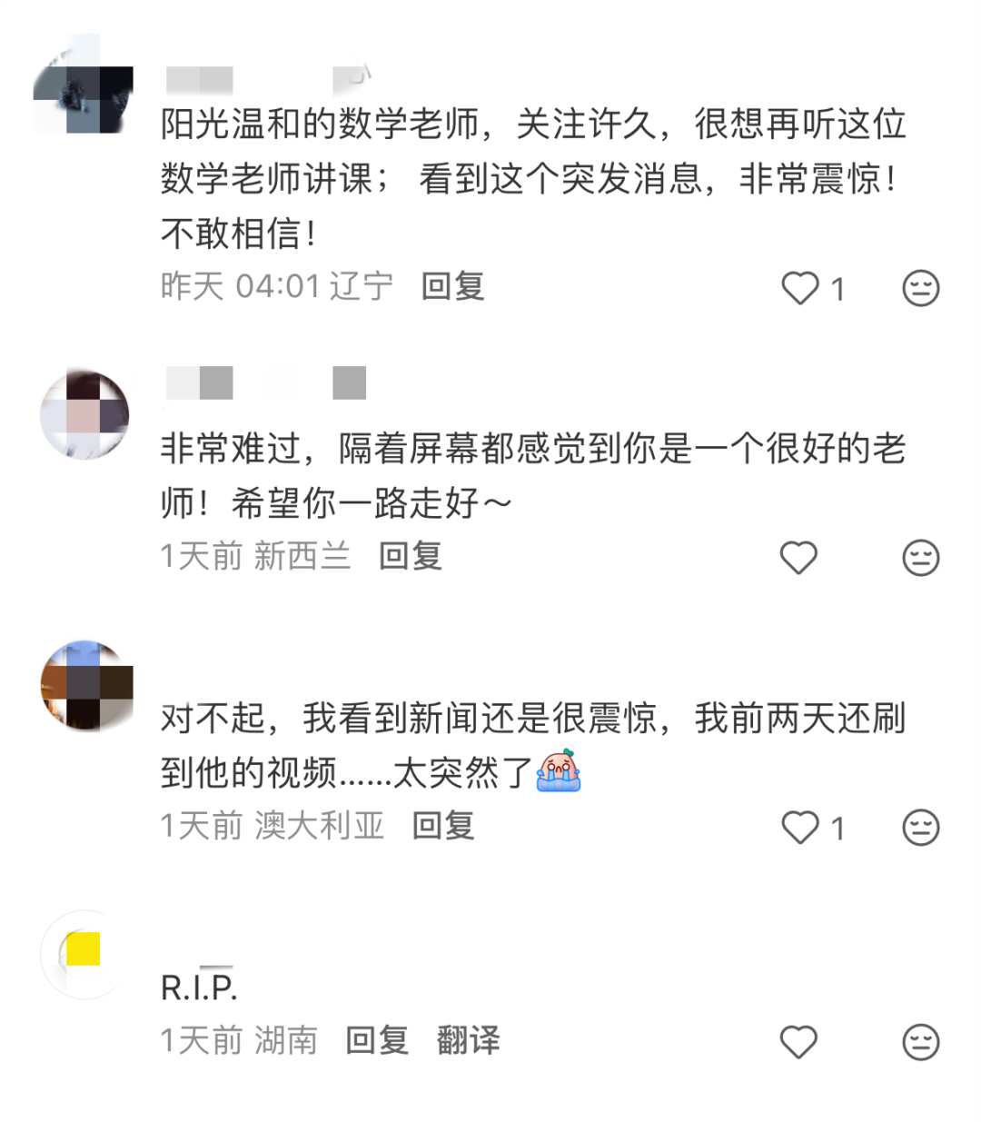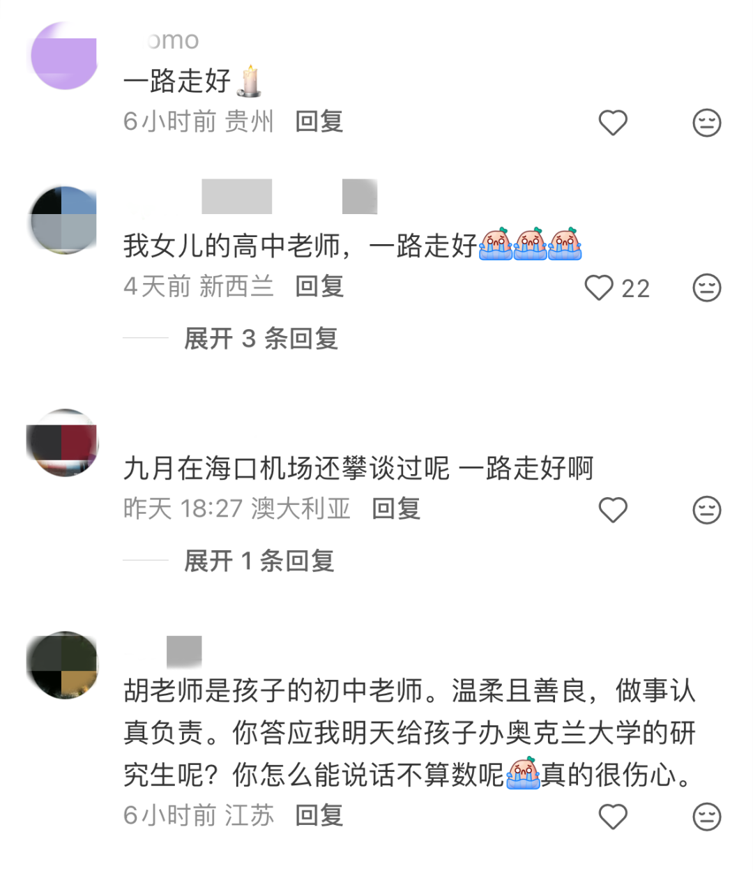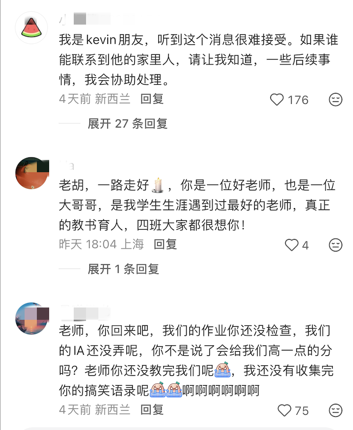 在胡老师的小红书帐号@新西兰高中数学老师 里,也涌进许多华人网友,留言哀悼。