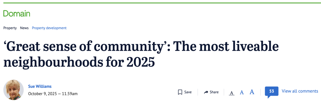 根据《2025年澳洲宜居社区普查》,居民从自然环境、安全、便利设施、医疗服务、学校质量和社区氛围等50个指标对社区进行了评价。