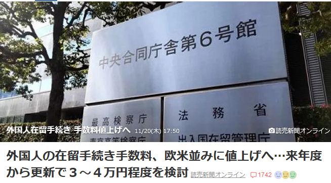 据报道,日本政府决定,明年外国人“在留资格更新”手续费用,将提高到与欧美相当的水平。涨幅惊人!