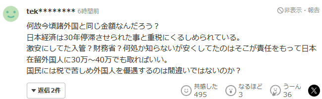 便宜到离谱的入管局?财务省?虽然不知道具体是谁,但只要知道有人以低廉价格提供服务,那就应该负起责任,对在日本居住的外国人收取30万~40万即可。