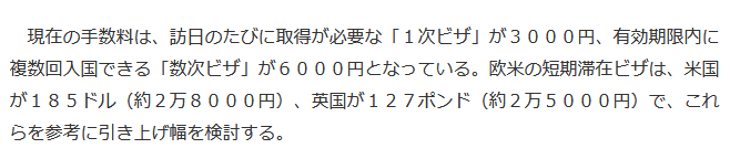而欧美的短期逗留签证,美国为185美元(约2.8万日元),英国127英镑(约2.5万日元),日本将以此为参考依据,考虑调整幅度。