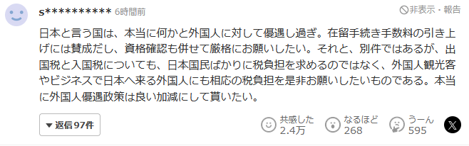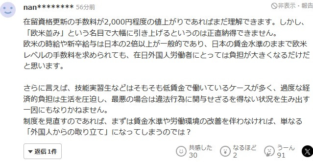 日本这个国家,真的给外国人太多优待了。我赞成提高在留手续费,同时也希望严格确认资格。