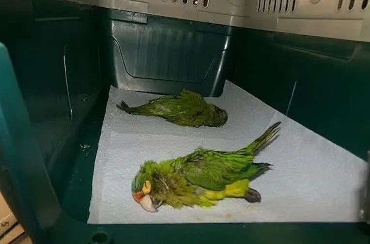 两只橙额鹦鹉雏鸟被海关人员送到兽医那里治疗,不久便恢复了活力。
