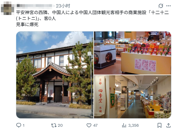 平安神宫西侧,由中国人经营、面向中国团体游客的商业设施“十二十二(Tonitoni)”,顾客为零。