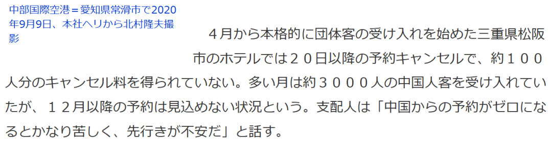 中部机场所在地的爱知县常滑市多家酒店也出现大量取消,一些酒店在短短数日内收到两千人以上的取消,主要来自旅行社的团体线路。