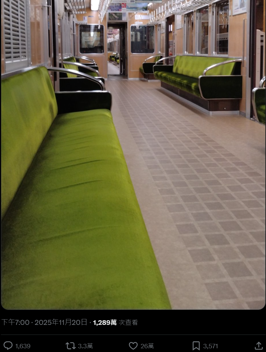 这则帖子阅读量高达1289万次,发帖人发了一张京都电车的照片,照片中空无一人。