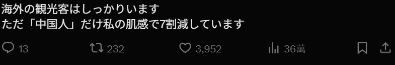 “外国游客还是有的。只是中国游客按我的体感减少了大约七成。”