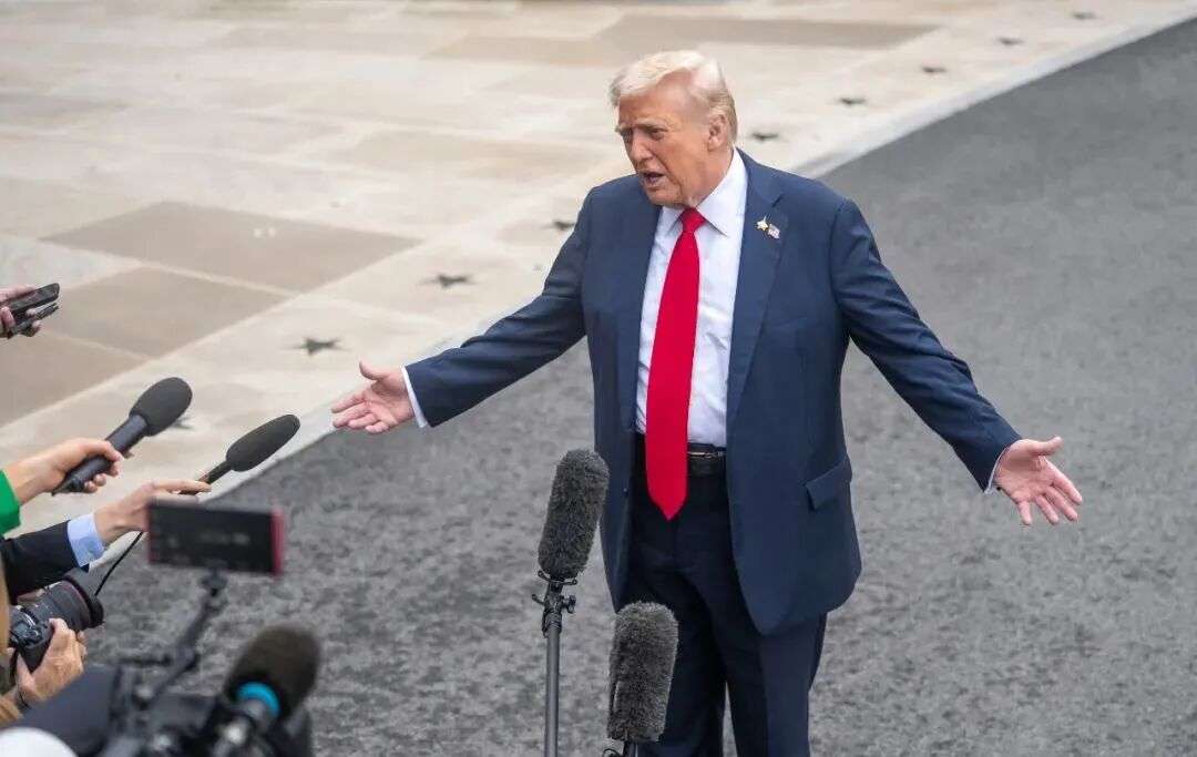 特朗普当天在白宫会见明年1月1日即将出任纽约市长的马姆达尼,这是两人首次碰面。闭门会谈后,两人在椭圆形办公室回答媒体记者提问。特朗普坐在办公桌前,马姆达尼垂手站在他身旁。两人有说有笑,还有肢体接触。