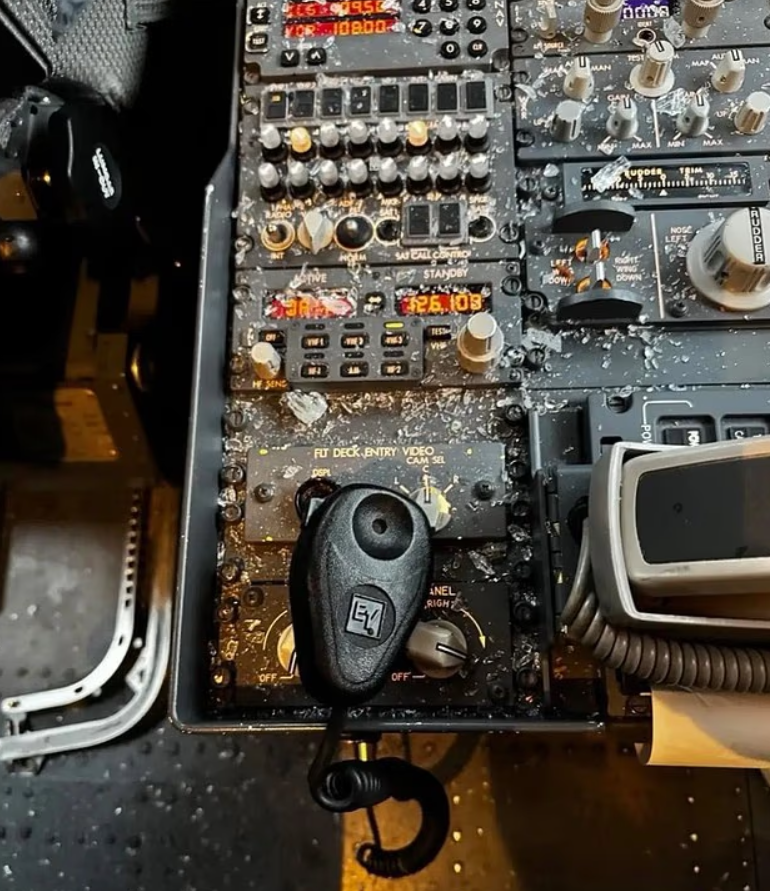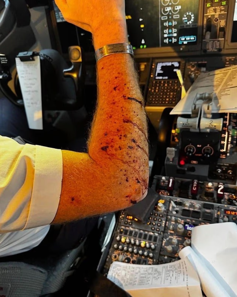 撞击瞬间,驾驶舱玻璃应声破裂,飞散的碎片洒向机组人员。机长右臂被玻璃划伤,虽为表皮伤口,但面积不小;副机师则幸运未受伤。
