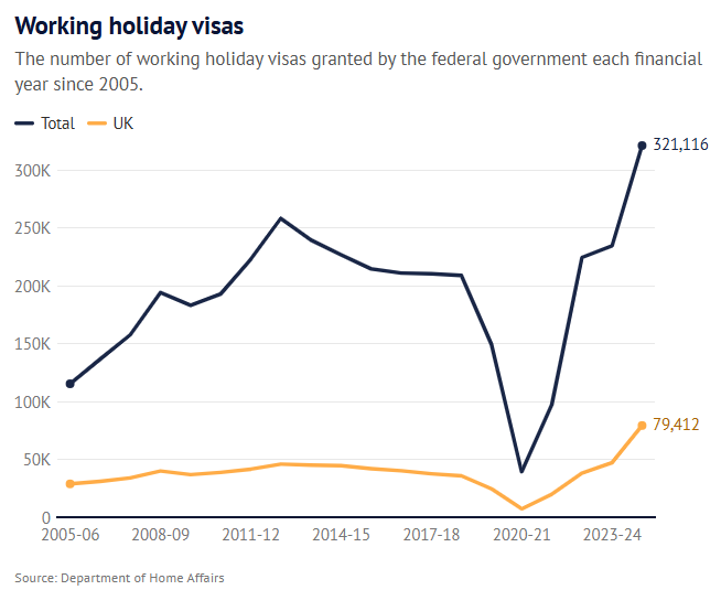 不过,打工度假签证的火爆增长,也正在让澳洲的临时移民规模变得愈发不可控。