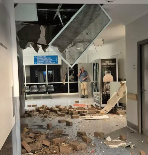 当地警方证实,是医院一楼电梯附近约四平方米的小块天花板坍塌,幸运的是没有任何患者或工作人员受伤,电力正切换至应急供应。
