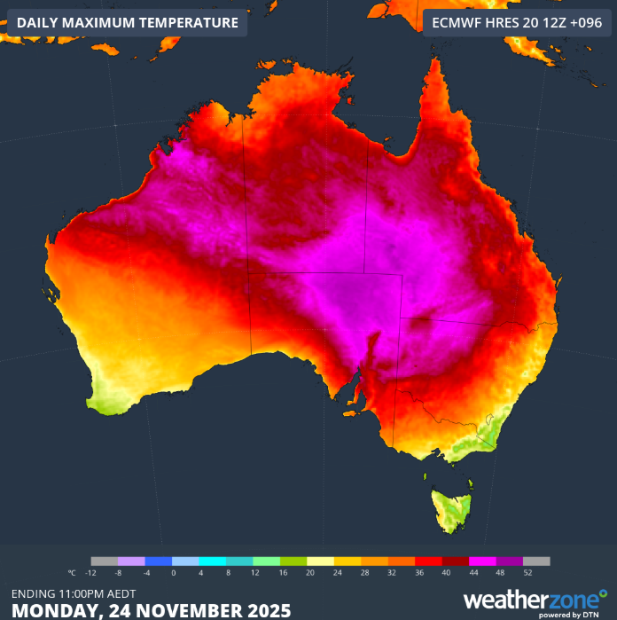 南澳周日周一将达45至46℃,昆州西南部甚至攀升至47℃。新州西北部与北领地南部同期也将出现40℃高温。