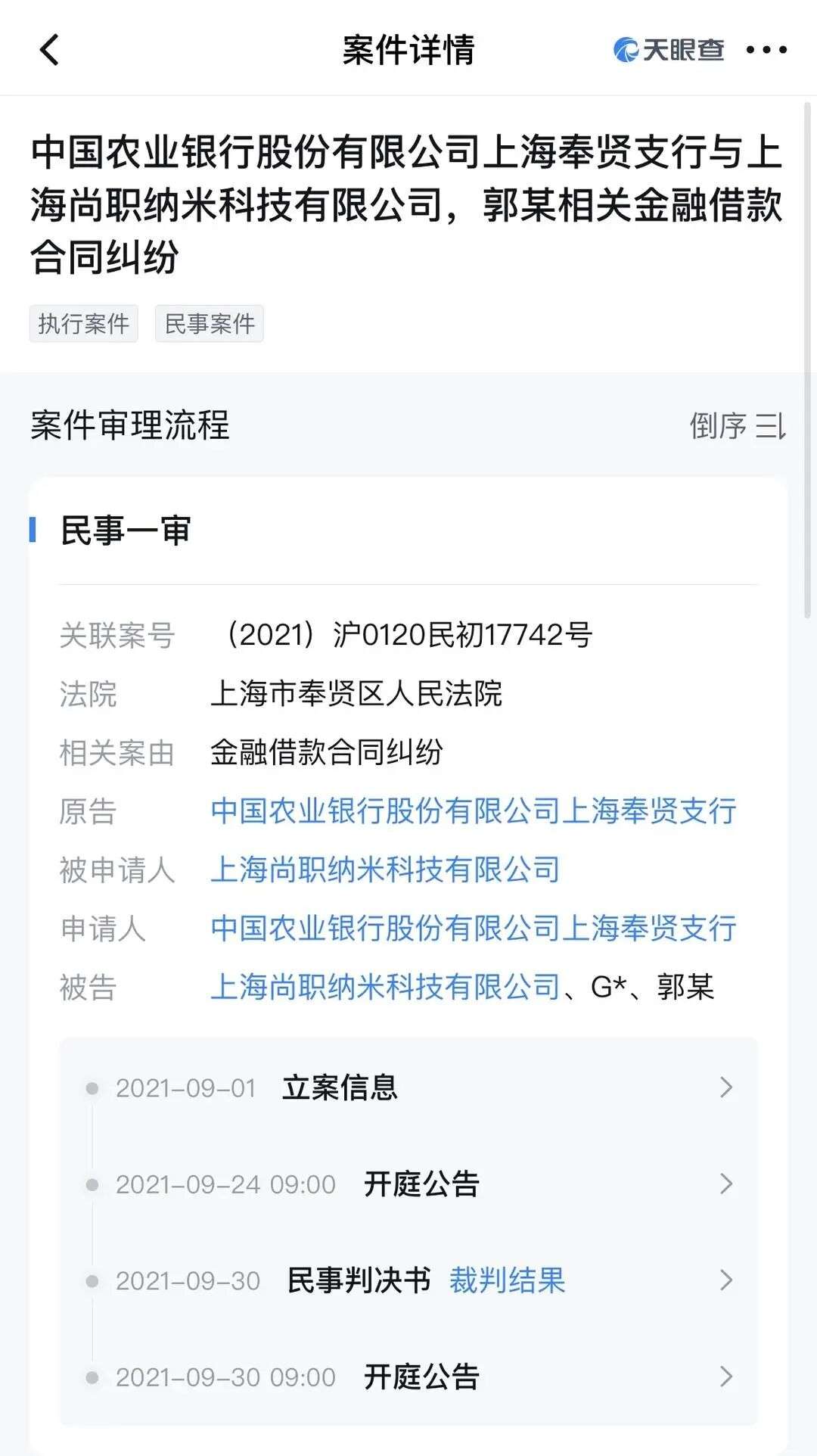 法院称,经穷尽财产调查措施,发现郭某及名下公司上海尚职纳米科技有限公司暂无财产可供执行。