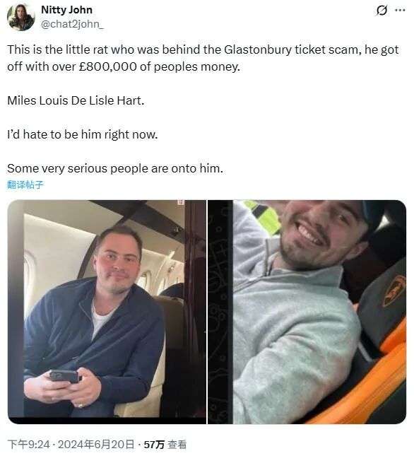 2024年格拉斯顿伯里音乐节开幕前,一些错过官方售票的乐迷的得知了两个新的购票渠道:一个是推广人凯,他在Instagram上发布了一条消息,称自己可以以1350英镑的价格出售VIP门票;另一个渠道来自一家公司Star Gaze,价钱也差不多。