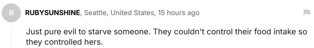 “让人饿成这样,简直邪恶至极。他们没法控制自己的食量,就去控制她的。”