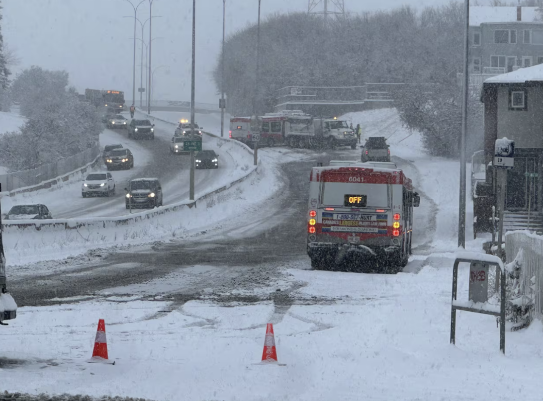 光卡尔加里一个城市,就有50辆公车当场卡住不动,市政府甚至启动“全城雪天绕行路线”,10年来少见。