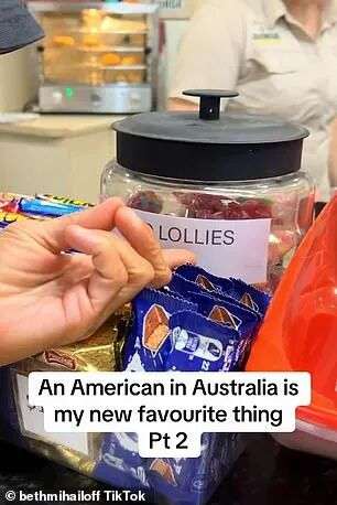 俚语差异:她发现一罐罐混合的糖果(lollies)在她的家乡叫“candy”,而“棉花糖”(cotton candy)在这里被称为“妖精绒毛”(fairy floss)。