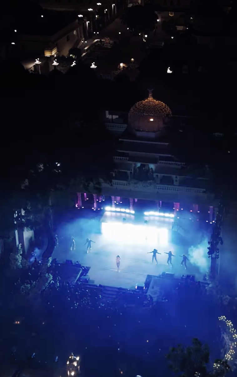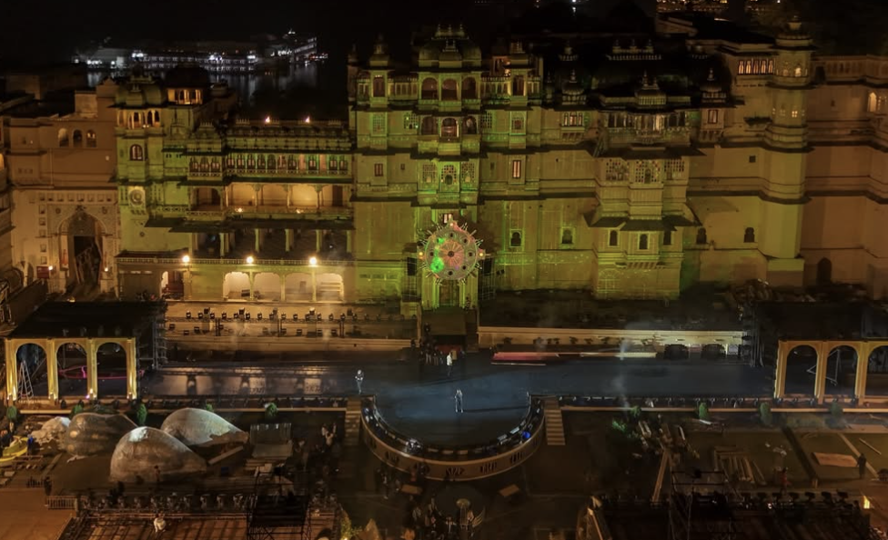 庆祝活动在乌代浦尔的一些皇家场所举行,乌代浦尔最宏伟的宫殿——丽拉宫殿、Zenana Mahal以及皮丘拉湖上的岛宫,都被这场婚礼承包了。