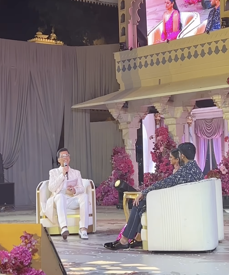卡兰·乔哈尔搞了个“卡兰脱口秀”环节,在台上逗新郎新娘,笑料不断。